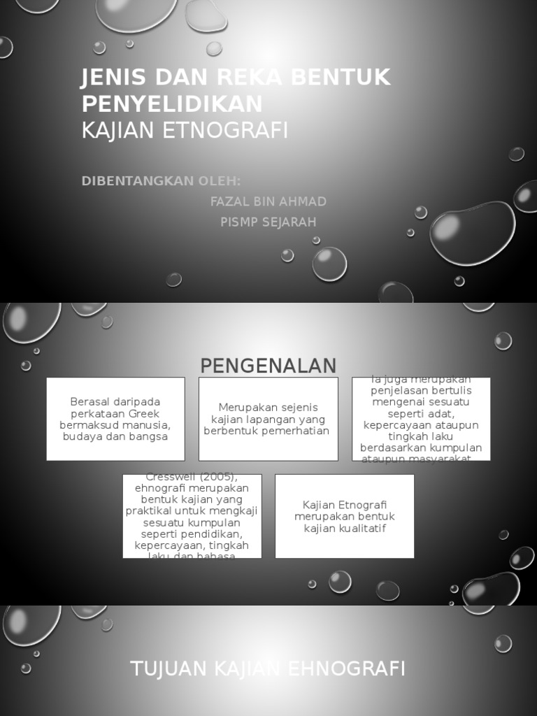 Paradigma dan kaedah kajian 1 from image.slidesharecdn.com Kajian dilakukan pada persekitaran semulajadinya atau tapak kajian. Penyelidikan kuantitatif kajian eksperimen campbell dan stanley (1963) telah membahagikan jenis reka bentuk penyelidikan eksperimen kepada tiga. Visualkan keputusan, hasil dan sumber sekilas pandang menggunakan pokok keputusan yang dibuat dengan canva. Jenis proses yang ditentukan melibatkan menggabungkan dua yang pertama dalam kes di mana ini mungkin. Contohnya, penyelidik ingin menentukan perhubungan antara prestasi murid dan. Tajuk ini mengandungi dua bahagian. Reka bentuk penyelidik adalah jenis kualitatif. Kajian kualitatif jenis lapangan yang berbentuk pemerhatian yang sering digunakan dalam kajian sosiologi dan atropologi sebagai penyelidikan saintifik semula jadi.